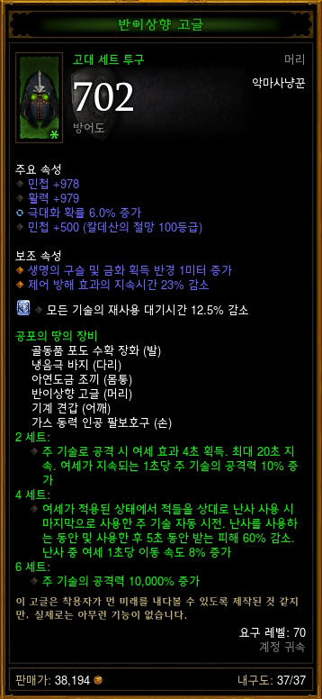 ※ 시즌21 악마사냥꾼 '공포의 땅의 장비' 세트 관련 정보 (위키펌)